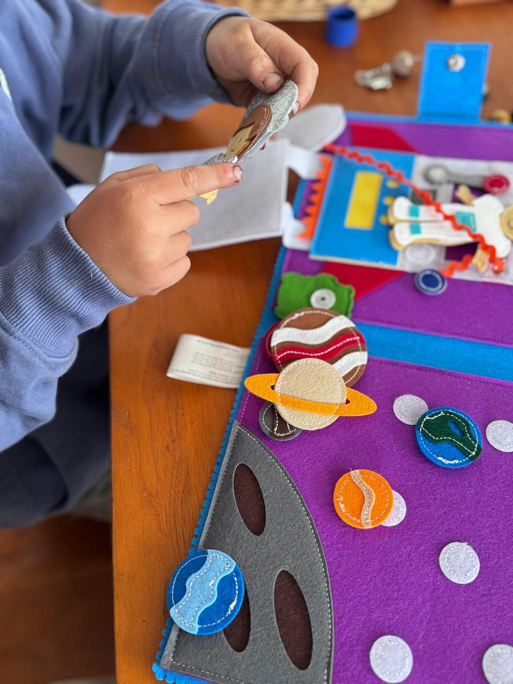 This playset isn’t just about make-believe—it’s a sensory experience. From handling the planets to engaging with the finger puppet, it encourages tactile exploration, enhancing motor skills and hand-eye coordination in a way that’s fun and engaging.